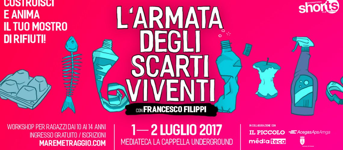 L’ARMATA DEGLI SCARTI VIVENTI, workshop gratuito dedicato a ragazze e ragazzi dai 10 ai 14 anni che vogliono trascorrere due giornate a divertirsi assieme al nostro regista Francesco Filippi, imparando a riutilizzare quello che ogni giorno scartiamo e farne un film.