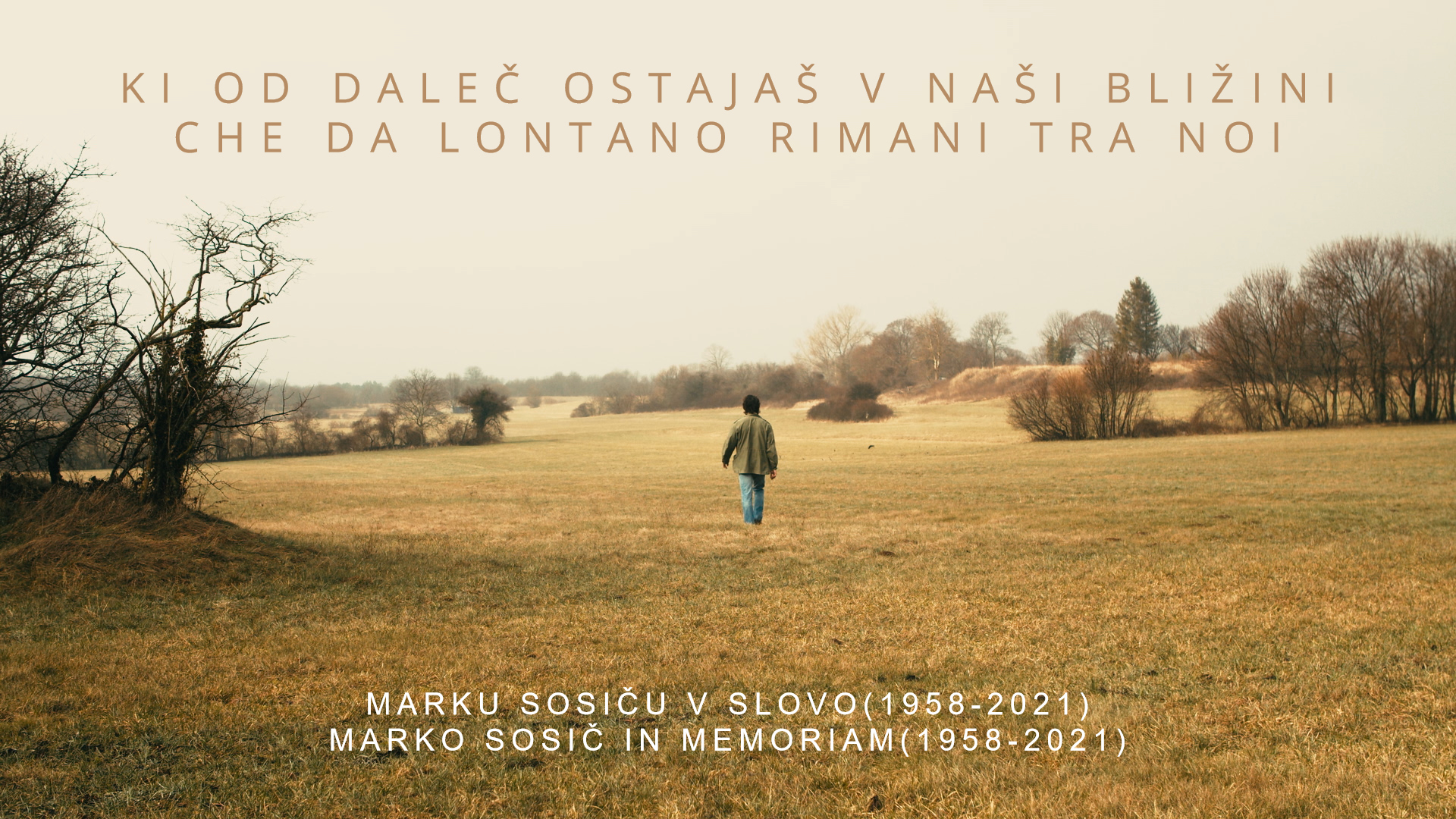 Le sale sono chiuse e una cerimonia tradizionale avrebbe riunito troppe persone che gli sono state vicine umanamente e artisticamente, per questo il Teatro Stabile Sloveno ha deciso di promuovere la realizzazione di un incontro online che, parafrasando un’opera di Sosič, si intitola »Che da lontano rimani tra noi«. Il mosaico di recitazioni e testimonianze, interamente sottotitolato in italiano e sloveno, andrà in onda domenica 7 marzo alle ore 18.00 sul canale youtube del TSS e sui canali social delle organizzazioni che hanno collaborato al progetto. Rimarrà online fino alle ore 22.00, per poi essere trasmesso dalla sezione di programmazione slovena della RAI regionale sabato 13 marzo alle 21.00.