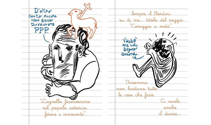 Il viaggio inizia con un’autobiografia immaginaria o in questo caso immaginata da Elettra Stamboulis e Gianluca Costantini. La gioventù di Pasolini, basata su fonti documentate, viene restituita sotto forma di diario illustrato e ci racconta il bambino e il ragazzo, prima ancora che l’uomo si possa trasformare nella figura quasi mitologica cui sarà destinato. Un romanzo di formazione.