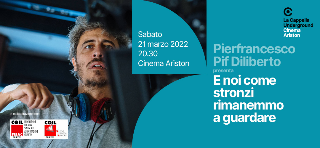Sabato 21 maggio alle 20.30 Pierfrancesco Diliberto, meglio conosciuto come Pif, incontrerà il pubblico del Cinema Ariston per presentare il suo ultimo film E noi come stronzi rimanemmo a guardare. L’evento è realizzato da La Cappella Underground in collaborazione con CGIL Trieste, FISAC CGIL Trieste e NIDIL CGIL Trieste.
