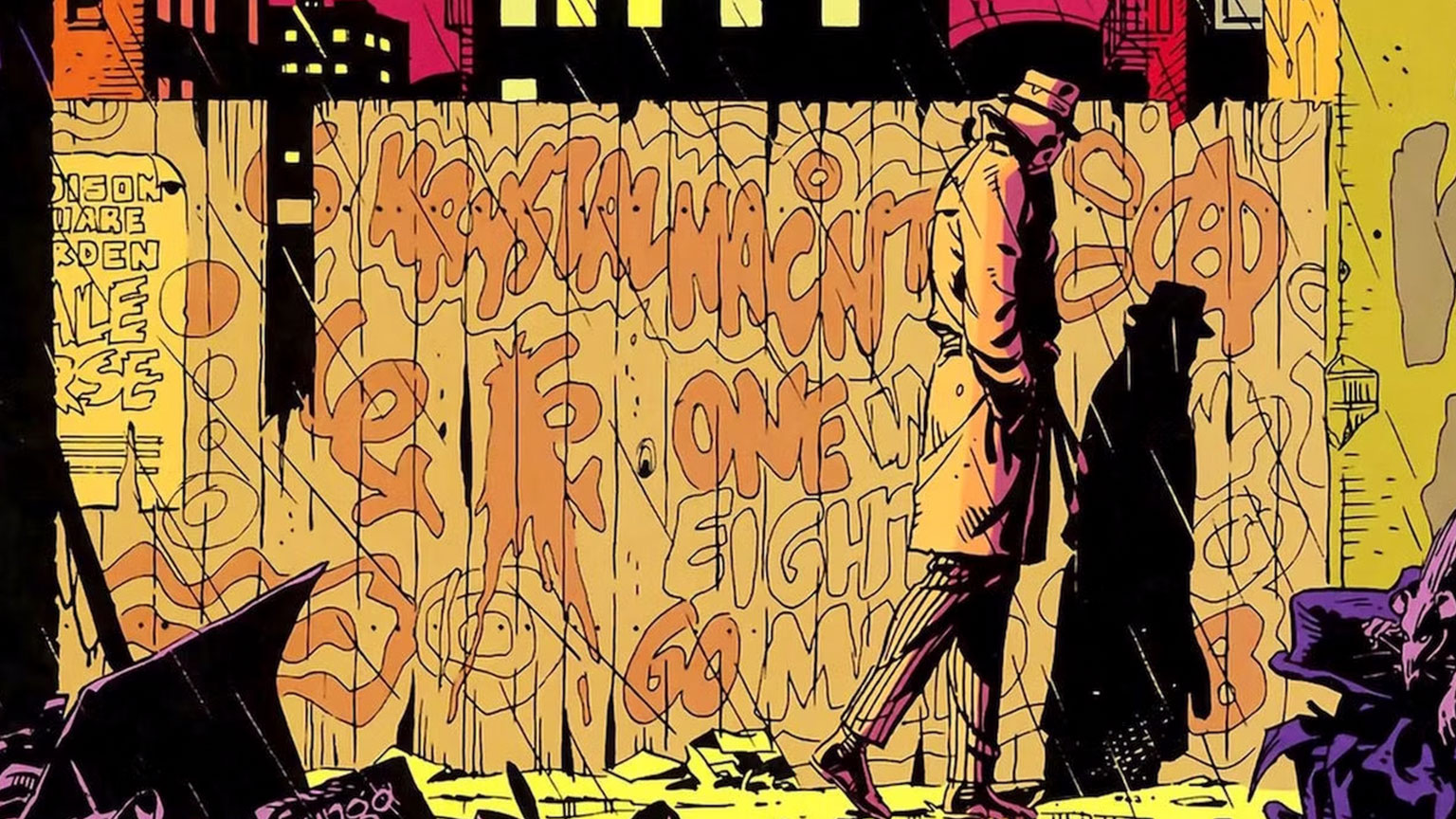 Essendo “il colpo di scena” il filo conduttore di questo mese, abbiamo scelto Watchmen in quanto esso stesso lo è stato quando, poco dopo la metà degli anni Ottanta, ha trascinato giù dai loro piedistalli gli eroi in calzamaglia che per quasi cinquanta anni se la godevano indisturbati. Nuovamente con i piedi per terra, ora erano costretti a sporcarsi le mani aggirandosi in mezzo alle persone comuni, sbattendo qua e là come falene impazzite, ma continuando a causare danni inimmaginabili. In continuità con il pantheon della mitologia greca, i super restituivano un’immagine fedele dell’umanità con i suoi pregi e i suoi difetti, ma erano soprattutto le debolezze a risultarne enormemente amplificate ed ora erano sotto la lente di ingrandimento.