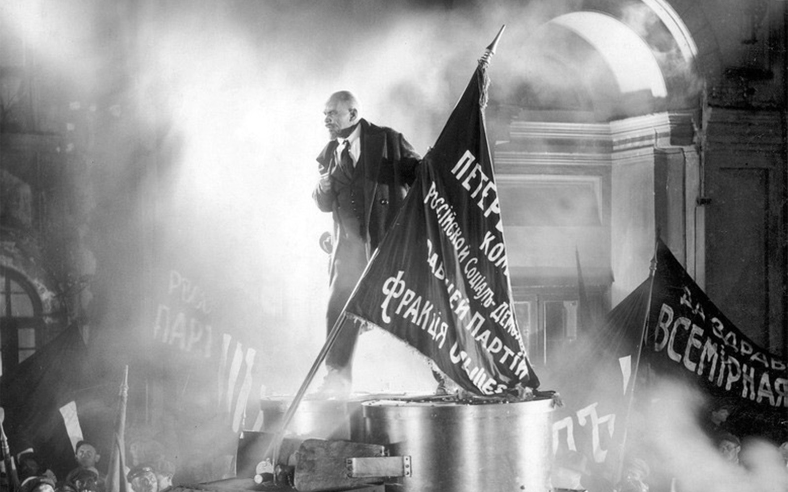 A Pietroburgo nel febbraio del 1917, il regime zarista è stato deposto dalla rivoluzione borghese di Kerenskij, ma le condizioni di vita dei proletari non sono migliorate e il sistema di governo è repressivo esattamente come il precedente. La rivolta popolare contro il nuovo regime sarà guidata da Lenin che porterà, nell’ottobre dello stesso anno, l’insurrezione ad assediare il Palazzo d’Inverno e a far cadere il governo provvisorio.